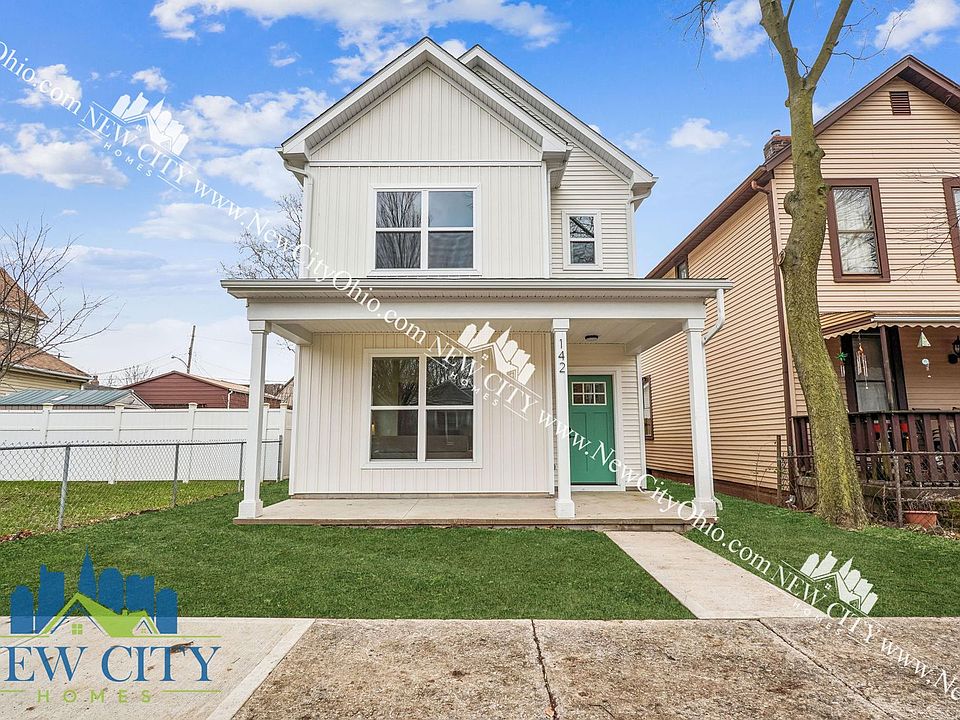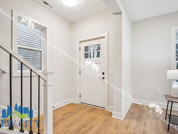 Welcome to this 3 Bed, 2.5 Bath, newly built home in Franklinton, Columbus, OH! This stunning home boasts a modern design with vaulted and 9 ft ceilings, brand new LVP flooring, and modern fixtures throughout. The kitchen is a chef's dream with stainless steel appliances, a dishwasher, a micro-hood, and quartz countertops. The home features three spacious bedrooms with large closets, two full bathrooms, and a convenient 1st floor 1/2 bathroom. The laundry room comes with washer and dryer connections for your convenience. The home is energy efficient with dual pane vinyl windows and LED lighting. Enjoy the outdoors with a covered front porch and a private backyard enclosed by a 6 ft privacy fence. Parking is a breeze with off-street parking and a 2-car garage equipped with overhead door openers. The home also features central air for those hot summer days. The first floor has blinds installed for your privacy. This home is a perfect blend of comfort and modern living.