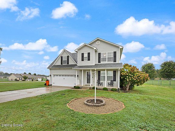 Situated on a spacious 0.73-acre lot in the desirable Ambrook Estates, this updated 3-bedroom, 2.5-bath home offers 1,460 sq ft of comfortable living with hardwood floors in the living, dining, and kitchen areas, crown molding, and new appliances. The primary bedroom features an en-suite bath, and the upstairs layout includes a convenient laundry area with washer and dryer included. Enjoy outdoor living with a deck, lower patio with fire pit, and a gazebo equipped with built-in speakers and lighting. Additional highlights include a new 3-ton HVAC system (2024), invisible dog fence, two-car garage, and a newer roof. Located across from the community park with walking trails and neighborhood events, this home blends modern updates with a welcoming setting.