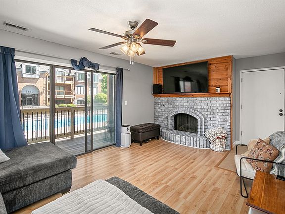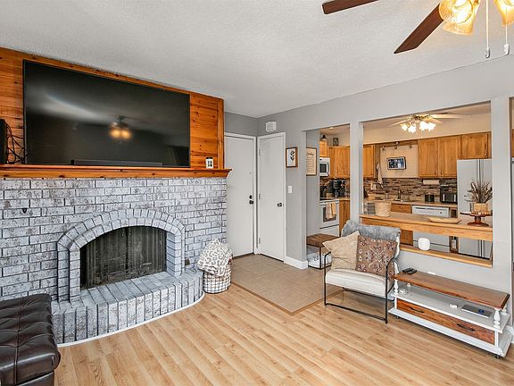 Welcome to your updated, pool side 2-bedroom, 2-bath condo. Offering 1,083 sq ft of comfortable living space in the desirable Camelot West community. Enjoy the open-concept layout with new flooring throughout, fresh interior paint, and a cozy gas-log fireplace. Sliding doors lead to a private deck overlooking the community pool, perfect for relaxing or entertaining. The kitchen includes all major appliances, and the primary suite features a private bath and ample closet space. Additional perks include in-unit laundry, a detached one-car garage, central air, storage closet and access to the clubhouse and pool. The HOA covers water, gas, trash service, exterior maintenance, and snow removal. Located near parks, shopping, dining, and I-35, this home offers convenience, comfort, and charm. Come take a look at this amazing home!