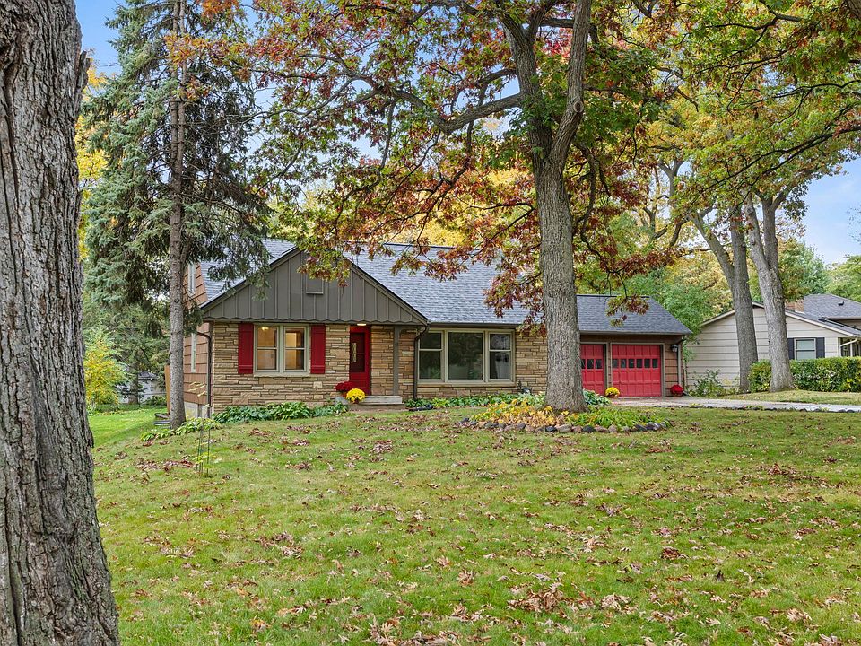 Step through the front door into a sun-drenched living room featuring a charming wood-burning fireplace — the perfect spot to gather and unwind. The open layout flows into a spacious formal dining room and a well-appointed kitchen with abundant cabinetry and countertop space. Just off the kitchen, a versatile flex room offers options for an informal dining area or home office and leads to the heart of the home — a cozy sunroom bathed in natural light and overlooking the serene backyard and expansive deck. Two generous main-floor bedrooms share a full bath and offer ample closet space. Upstairs, discover a private owner's retreat featuring a large bedroom, exceptional storage, and a full ensuite bath. The finished lower level expands your living space with a spacious family room complete with built-ins, a convenient half bath, another spacious bedroom and a laundry room with additional cabinetry for storage. Roof 2021, new Sewer line 2019, water softener 2025, water heater 2023 & many updated windows, furnace 2012 + 1 year home warranty! Step outside to enjoy the large deck and patio — ideal for entertaining, soaking up the sun, or simply relaxing while watching kids or pets play in the yard. Located in a terrific neighborhood, this home blends timeless charm with functional living. Don’t miss your chance to call this storybook property your own!