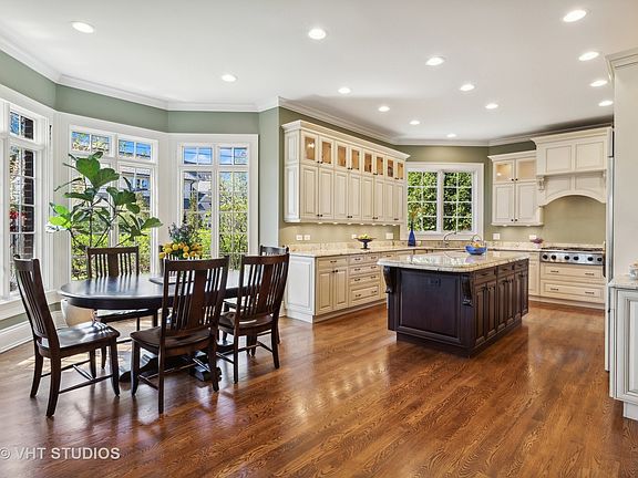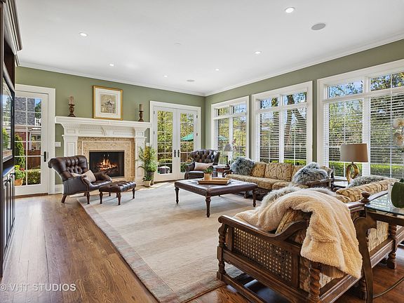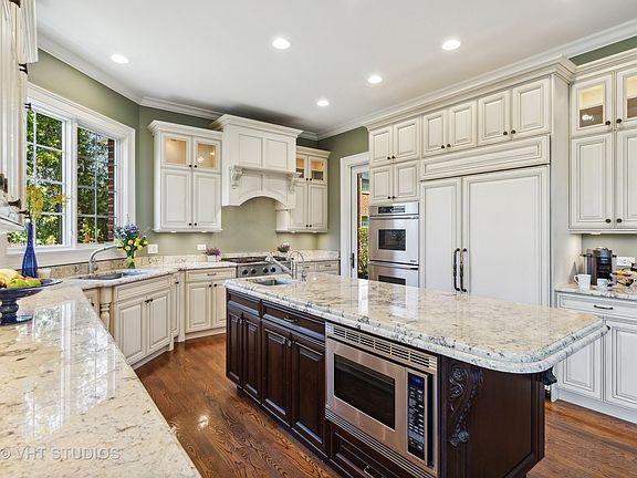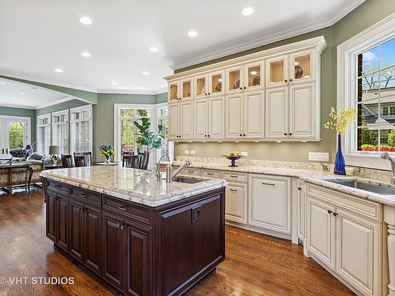 Welcome home to this sophisticated and elegantly appointed newer built home in a highly sought after East Glenview neighborhood. Gather in the expansive family room that opens to the breakfast room and kitchen bathed in light all day with its walls of floor to ceiling windows facing south & west. Perfect for entertaining, large family gatherings or quiet living, the family room offers a gas/wood burning fireplace with doors that open outside to a huge paver patio with outdoor kitchen BBQ grill. The chef's kitchen is complete with high end appliances, double oven, expanded island with prep sink, walk-in pantry and dry bar adjoining the dining room. From the kitchen, step outside to the 2nd patio for your morning coffee or relax with a book. This home boasts impressive craftsmanship and detailed artistry with arched doorways, coffered, coved, arched and tray ceilings, crown moldings, oversized baseboards, built-ins, 10 and 9 ft ceilings, 4 fireplaces, and hardwood flooring throughout. Enjoy a spacious layout, 2 outdoor patios, top-of-the-line gourmet kitchen and a 3 car heated garage. A first-floor bedroom office offers an ensuite bath, built-ins and a beautiful coffered ceiling. The living room flows into a separate dining room with easy access to the 2nd large outdoor patio. Upstairs are 5 generous sized bedrooms and 4 baths. The primary suite with fireplace enjoys an expansive west facing balcony, 2 walk in closets plus a spa style bath with walk in shower, separate air jet tub + double sinks. 4 other large bedrooms offer XL closets, ceiling fans, skylights, a Jack & Jill bath and 2 ensuite baths. The lower level lives like its own home with loads of natural light created from adding full sized windows. The huge rec room has a stone fireplace, 2nd kitchen with frig & sink, sauna bath, 2 more guest bedrooms, a wine closet, exercise room + storage rooms. An exquisite 2 story entry foyer features a curved staircase with wrought iron balusters & Juliette balcony. The exterior curb appeal is stunning with manicured grounds of flowering trees, privacy hedges and perennial flowers. This beautiful home will satisfy the most discerning tastes with its high end appointments & meticulous care. Top rated schools and conveniently located near shopping & dining, parks, tennis courts, forest preserve bike trails, Wagner Farm, golf courses & I-94 Edens expressway.