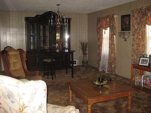 Brick ranch featuring living room, den/family room, 3 bedrooms, 2 full baths, eat-in kitchen, single garage plus double carport, situated on 5.66 acres. Beautiful setting with large garden area.