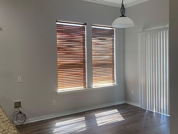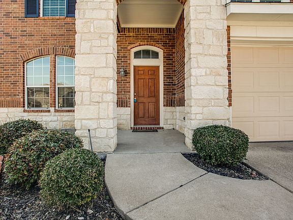 MOVE IN SPECIAL AVAILABLE, $100 AMAZON GIFT CARD FOR IMMEDIATE MOVE IN. This elegant two-story residence features a striking brick-and-stone exterior, a welcoming entrance, and a landscaped front yard. Inside, the open-concept layout includes a modern kitchen with granite countertops, wooden cabinetry, and stainless steel appliances, flowing into bright dining and living areas with tile and carpet flooring. Architectural details such as columns, arched openings, crown molding, and recessed lighting add sophistication throughout. The bedrooms are spacious and filled with natural light, complemented by neutral tones and ceiling fans for added comfort. Bathrooms are clean and functional, offering updated fixtures, tiled surrounds, and double vanities. A dedicated media room and a walk-in closet with built-in shelving provide extra convenience and versatility. Large windows with blinds and sheer curtains enhance the airy feel of the home, while a cozy fireplace and stylish staircase elevate the interior charm. Outside, a covered patio and fenced backyard offer the perfect space for outdoor relaxation and entertaining. This home blends comfort, style, and functionality in every corner.