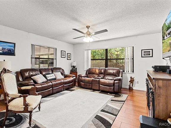 BEAUTIFULLY nestled on over 1/3 of an acre within the hidden gem of the Quail Run community, this spacious 2/2/2 offers nearly 1,700 living square feet while proudly featuring both a newer roof (2021) AND A/C unit (2020)! This well-maintained home also offers beautiful plank flooring in its separate living and family rooms, spacious bedrooms with walk-in closets, an indoor laundry room, and an enclosed patio/sunroom that oversees the backyard's clear canvas awaiting your customized oasis! The inviting galley kitchen serves as a large central hub for entertaining with its extensive countertops and cabinet space, while the adorned entry, with its large picture window and accented stained glass door, highlights the welcoming flow of the home's layout! Beyond the home's comforts, enjoy such amenities as the community pool, clubhouse, tennis/pickleball courts, shuffleboard, and more! Located centrally between Ocala and several of Citrus County's larger cities, the perfect mix of peace and quiet, and shopping, dining, or other social options await you at this home!