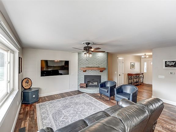 Enjoy 6 acres of country living with the convenience of being minutes from downtown, the Great Miami River and bike trails. This 4 bed, 3 bathroom ranch is beautifully updated and has plenty of space for everyone. The 4th bedroom area can even be used as a MIL suite with a private entrance. Oversized 2 car attached and an additional 3 car detached garage/workshop. The kitchen has granite countertops, a large island, tile backsplash and gas range. Highspeed internet is available for those still working from home. Wood NexGen-Fyre Fireplace insert in the living room. Grecian In ground pool outside and new stamped concrete patio for entertaining. A must see!!