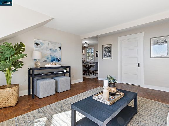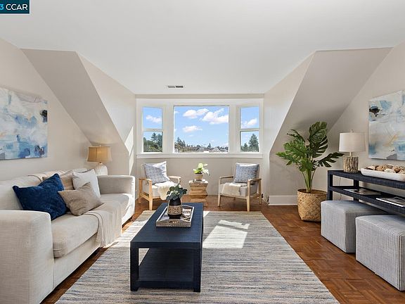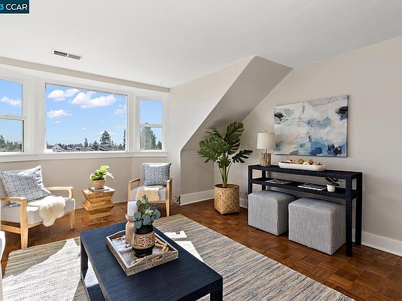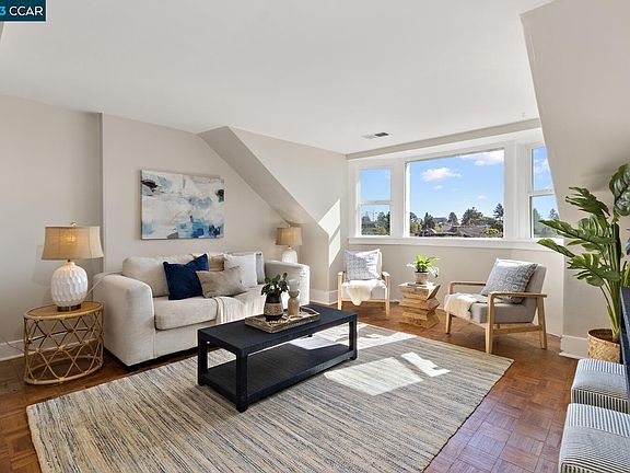 Delightful and rare Berkeley gem with SF and bay VIEWS! This beautiful 2 bedroom, 1 bathroom top floor condominium is move-in ready and immaculate with freshly painted interiors, parquet hardwood and tons of light. The inviting eat-in kitchen has granite countertops and breakfast bar. The serene balcony deck from the kitchen or bedroom is perfect for morning coffee or evening dining overlooking gorgeous bay views. Lovely lower yard shared with only 2 neighbors. Tucked on a serene tree-lined street and conveniently located approximately a mile to UC Berkeley campus and BART, and just blocks from eateries, University Avenue and Trader Joes. First time on the market in over 30 years...your clients will love it!