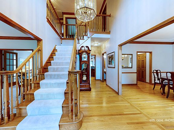 Check out the 3D virtual tour and photos to experience this impressive home firsthand in the Greens neighborhood of the highly sought out Stonebridge community. Two story entryway, crown molding, hardwood floors and gorgeous staircase greet you as you enter. Separate dining room and living room with French doors. Relax in the generous size family room featuring a brick fireplace from floor to ceiling, sky lights and a wet bar. Entertain in the gourmet kitchen that boasts tons of custom cabinets, island with seating, endless granite counters, stainless steel appliances, and cozy eating area. A 1st Floor bedroom with two closets on the main level would be a great in-law arrangement/office/four season room. The 2nd Level has an oversized primary bedroom with a remodel bathroom with jacuzzi tub, heated floors, walk in shower and a custom double vanity with fixtures/mirrors. Two separate walk-in closets with tons of room/storage. Three additional large bedrooms with a shared full bathroom. A full unfinished basement ready to be finished for additional living space. Mudroom/laundry room with cabinets/sink/closet and separate entry door to the side yard. 2 car garage. Enjoy the professionally landscaped yard and large deck with retractable awning off the back of the house while you take in the views of the 13th fairway. A block to the Stonebridge Country Club. Improvements to property: Primary Bathroom (2010), Tear off roof/skylights (2014), Garage Doors (2015), Granite Counters (2016), New HVAC (2022), Exterior Paint (2023), Sump Pump (2025) and front exterior lights (2025) Highly regarded District 204 Schools (Grade and Middle School in the subdivision). A commuter's dream - minutes from the Metra Station (Rte. 59), Interstate I-88, Grocery and other shopping destinations.