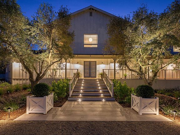 Set on 4.52 acres in one of Sonoma's most private prestigious enclaves, 1420 Grove Street offers a rare blend of refined architecture, vineyard beauty, and resort living just minutes from the Plaza and Sonoma Golf Club and only an hour from San Francisco. A vineyard and olive tree lined drive leads to the distinguished farmhouse with an iconic wraparound porch and walls of glass framing sweeping views of gardens, vines, and mountains. The home flows primarily on one level, centered by a dramatic great room and chef's kitchen with Viking range, Sub-Zero refrigeration, marble island, and walk-in pantry. All bedrooms are en-suite, while the upstairs primary retreat includes a sitting area, fireplace, study, soaking tub, walk-in shower, and expansive closet. Masterfully designed for entertaining, the grounds showcase a saltwater pool and spa, limestone patios, rose-covered arbors, sauna, raised beds, and a vine-draped dining trellis. A re-imagined barn offers an en-suite bedroom, gym, storage and entertaining space, while a three-car garage with EV charger, large solar system, backup generator, and dual gated entries ensures modern ease and security. Elegant, serene, and created for memorable gatherings, this distinguished estate captures the essence of Wine Country living