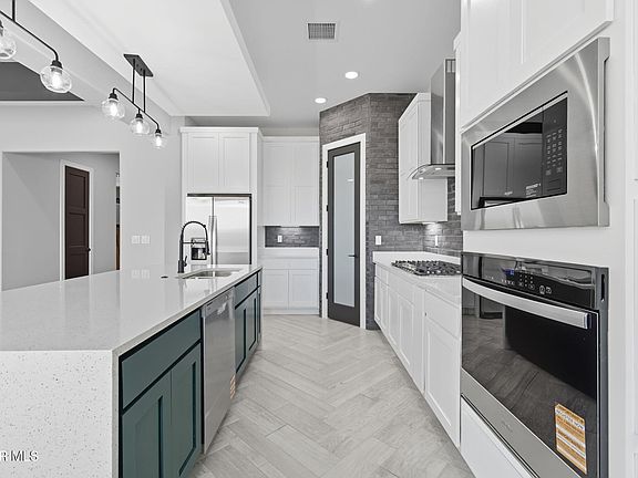 The heart of the home is the chef-inspired kitchen, complete with a sleek potfiller above the stove, a striking waterfall island, and elegant Quartz countertops. Thoughtful design extends to every detail, with floating cabinets in the restrooms that provide both sophistication and convenience.