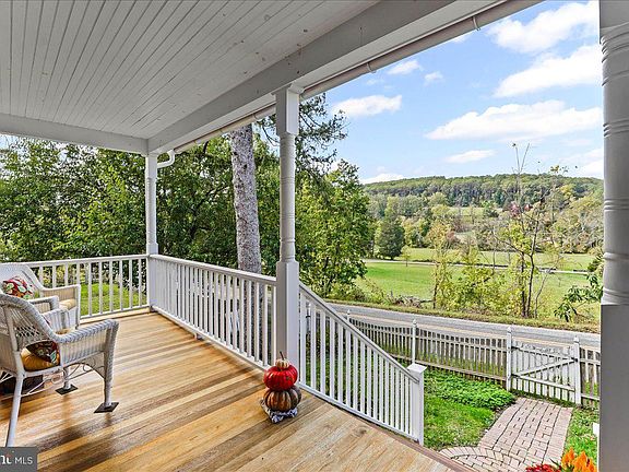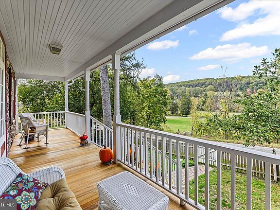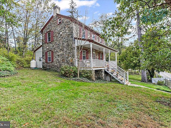 Welcome to The Village of Birchrunville, and this 1852 Stone Farmhouse with original stone and timber barn converted to garage and workshop, overlooking the The Birchrun. Enter the living room from the updated mahogany porch or enter from the lower level patio to the family room with walk-in fireplace. Deep windowsills and hardwood floors throughout the original part of the home. Living room includes fireplace with new insert and liner (2023), kitchen with stainless steel appliances, propane cooking and sunroom with access to rear patio. Dining room finishes the main living level. Original windows (still functioning) with ropes and weights remain in living room and dining room. The lower level family room offers radiant heat with bamboo flooring and half bath. Heated basement space with laundry. The upper level includes two bedrooms and hall bathroom with vintage cast iron clawfoot tub and ceramic tile. Walkup attic for storage. Have you been looking for a home that still has original features yet modernized? This is your new home.
