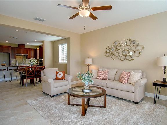 A stunning, almost new ranch style Home in a well sought after quiet Santana Ranch Neighborhood. East facing, spacious and well lit home with open floor plan. Kitchen features an island with breakfast nook, granite counter tops, stainless steel appliances and plenty of storage space. Large living room overlooks a beautifully landscaped patio. Tiled Floor throughout. Front room can be used as an office or kids play room. Master bedroom ensuite with large walk in closet and vanity with two sinks. Separate laundry room with large storage closet. OH 26th and 27th 1-4pm.