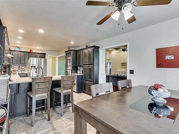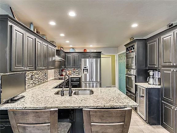 The kitchen has a breakfast bar, eat in area, an awesome pantry, stainless steel appliances (fridge not included), granite countertops, a wine fridge, can lights, raised ceiling, back splash, and a gorgeous vent hood. You also have access to the backyard from this area as well!