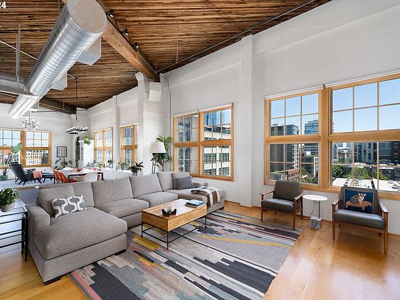 Designed by Daniel Hudson Burnham, the architect behind New York’s iconic Flatiron Building, the Marshall Wells Building is one of Portland’s most storied addresses.This northwest-facing corner penthouse loft captures sweeping views of Mt. Hood, the Steel, Broadway, and Marquam bridges, the downtown skyline, and the Moda Center, all framed by walls of windows and 14-foot ceilings. Exposed brick and original timber beams reflect the building’s industrial roots, while smart upgrades bring comfort and efficiency.A full HVAC overhaul in 2018 added a three-speed fan, programmable thermostat, refined ductwork, and improved crawl space access, cutting energy bills in half. The reimagined primary bath features a deep soaking tub, heated tile floors, a new vanity, and an expanded layout. In the kitchen, upgraded appliances and under-cabinet LED lighting enhance both form and function.Two parking spaces and an oversized storage unit (with direct garage access) add uncommon convenience in the Pearl. Just outside: the streetcar, galleries, parks, and some of the city’s best coffee.3D tour link and floorplan in photos.