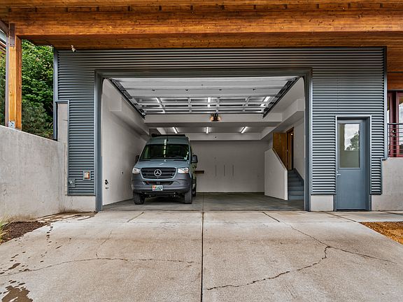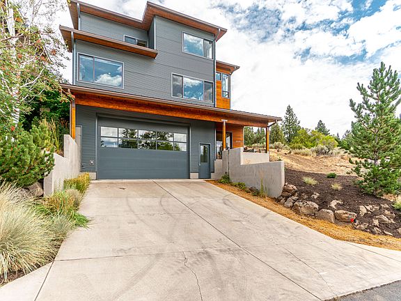 Nestled in on a dead-end street, 4 blocks from Newport Market in the heart of Bend, close to the river, downtown & westside amenities. This stunning home features a 30X26' oversized two-car garage with a 12ft tall garage door, perfect for your Sprinter, camper, RV & toys. This Christian Gladu-designed high-efficiency passive solar home offers abundant windows & natural light, an open floor plan, & hickory hardwood floors with 4 bedrooms & 3.5 baths. Pilot Butte & panoramic southern views from the great room with a cozy wood stove. The kitchen features stainless steel countertops, cherry cabinets, a butcher block island, tile floors, & tile backsplash. The main floor also has a full bathroom & bedroom, off the great room. Upstairs, the primary bedroom has 2 walk-in closets, a large bathroom with a tile walk-in shower, & views of the newly landscaped backyard. Two additional bedrooms, a bathroom, & flex space complete the upstairs. The backyard welcomes you with a deck for entertaining.