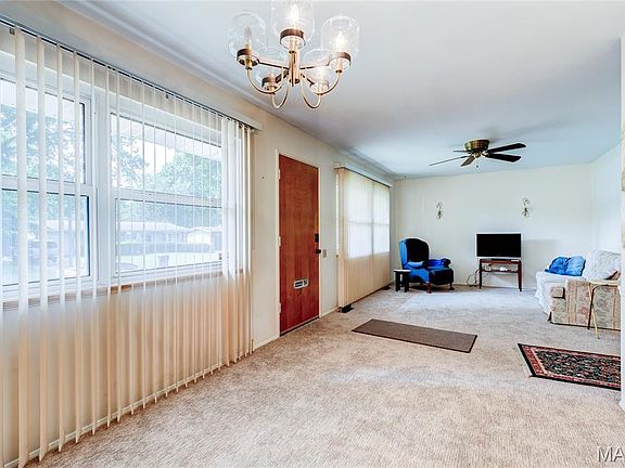 Charming Florissant ranch with PRIMARY SUITE, fenced yard and attached garage. Fantastic curb appeal with low-maintenance brick and vinyl exterior, plus expanded double parking pad. Thoughtful layout offers space for both everyday living and special occasions with open living room and formal dining. HARDWOOD floors under newer carpet. Eat-in kitchen with wood cabinets, newer dishwasher, smooth cooktop, wall ovens, STORAGE PANTRY and refrigerator stays. Step out to COVERED PATIO overlooking private fenced level backyard - ideal for entertaining. Relaxing owner's suite with half bath. Secondary bedrooms share hall bath with tub/shower combo. Downstairs laundry (washer and dryer stay), workshop, plus TONS OF STORAGE. Updates include: vinyl windows, plumbing stack and water heater. Near Highways 67/270/170, just 5 minutes to 13-acre Bangert Park (newer pool, playground, Sherman tank, trail, sports and more). Move-in ready with occupancy inspection already passed!