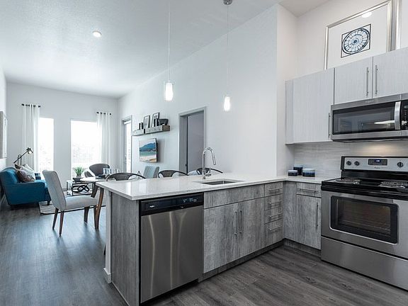 - Exterior features: , 9 Foot Ceilings, Basketball Court, Conference Room, Game Room, Granite Countertops, Onsite Dog Wash, Package Receiving, Putting green and bag toss, Stainless steel appliances, Steps from Oak Street Light Rail Station, Theater