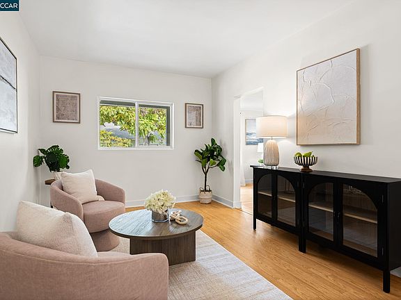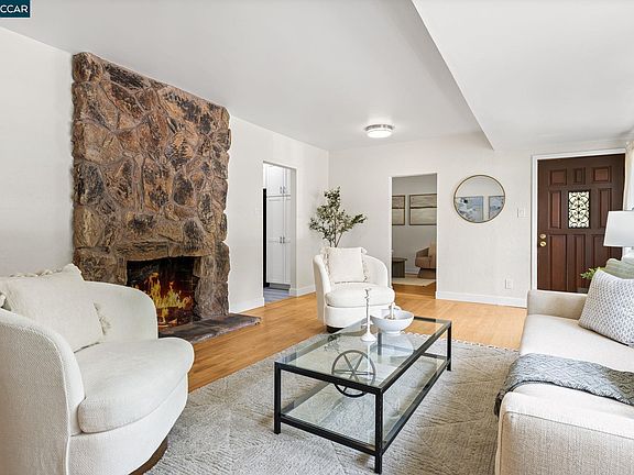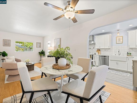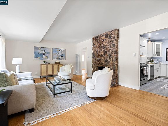 Step inside this refreshed single-story home where modern comfort meets everyday ease. The bright living room welcomes you with a wide picture window and a striking stone fireplace that anchors the space in warmth and character. Hardwood floors flow throughout, connecting the open dining area and the beautifully remodeled kitchen, where white shaker cabinets, quartz countertops, and a tile backsplash create a clean, timeless aesthetic. A gas range, stainless steel appliances, farmhouse sink, and pot filler make cooking effortless, while glass-front cabinets and open shelving add both charm and functionality. The updated bath showcases designer tilework, a glass-enclosed shower, and contemporary fixtures. Beyond the main living areas, flexible bonus rooms offer creative potential for a home office, gym, or studio. Out back, an expansive yard with a large patio and detached shed provides the perfect canvas for entertaining, gardening, or future expansion. Conveniently located near Oak Grove Plaza, De La Salle and Carondelet High Schools, multiple neighborhood parks, and freeway access to 680. Commuters will also appreciate proximity to BART and local transit, connecting throughout the Bay Area.