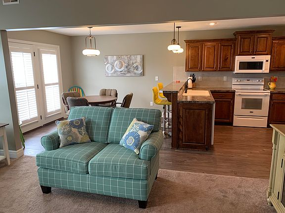 The lovely townhouse built in 2017 has so many upgrades from the professional landscaping to the beautiful cabinets. Vaulted ceilings and tray ceilings, tile floors and hard surface kitchen flooring. All kitchen appliances stay. The home has 3 bedrooms and 2 baths with lots of storage. The home is all electric. The laundry room is set up as storm shelter. Claiborne Fox association does lawn care and snow removal for all homes.