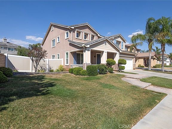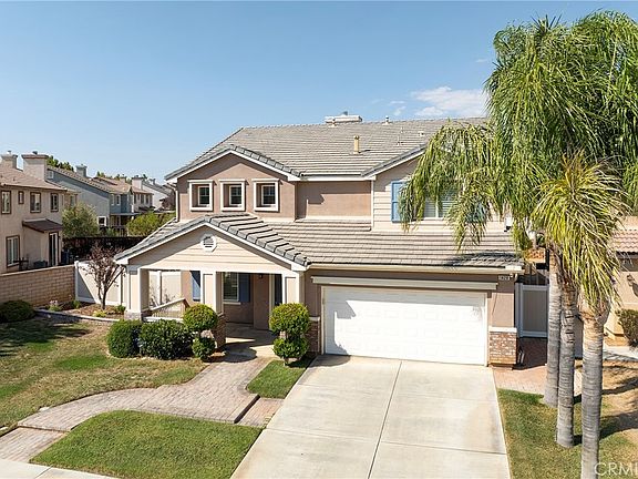 Spacious 5bd/3.5ba house in Beaumont is ready for your large family to call a home. As you enter, you immediately notice the large 15'x25' living room with formal dining area. Vaulted ceiling is overlooked by a nicely sized loft area that can be used as an office, playroom, or social area. As you enter the kitchen you immediately notice the large island with granite countertops, abundance of cabinet space, and a breakfast dining area that will accommodate a 48" table. The adjoining family room boasts a cozy fireplace and build-in for a TV or entertainment center. There is a downstairs bedroom and full bath for living on the lower level as well as a powder room for your guests. A nicely sized laundry room is also in the main level. Upstairs, there is an oversized guest bedroom with walk-in closet and two additional guest bedrooms, also with walk-in closets. Large master bedroom with vaulted ceiling leads to an over-sized bathroom with his/her vanities and a double-sized walk-in closet with ample shelves and closet space. Plantation shutters can be found throughout the house. Dual zone AC system with smart thermostats lets you control the upper and lower level independently. The front yard is nicely landscaped and there is a front porch to sit out on and enjoy. The backyard has a covered patio and lots of hardscaping. There are many different fruit trees and places to garden. 3-car tandem garage offers plenty of space for parking and storage. Conveniently located near freeways, schools, and shopping, as well as proximity to Palm Springs and an abundance of desert amenities. Well-kept neighborhood with no HOA. Please check out the picture descriptions for approximate room dimensions.