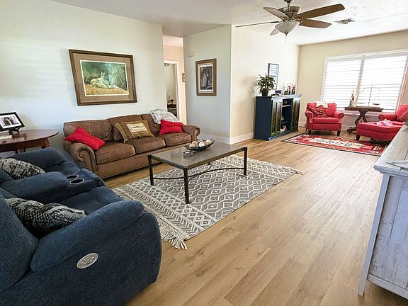 Spacious Living Areas: The open-concept living room and dining area provide a welcoming atmosphere for both relaxing and entertaining. Large windows with plantation shutters fill the space with natural light, creating a warm and inviting ambiance.