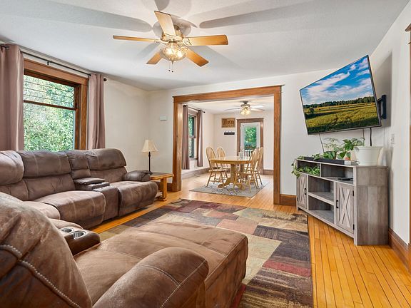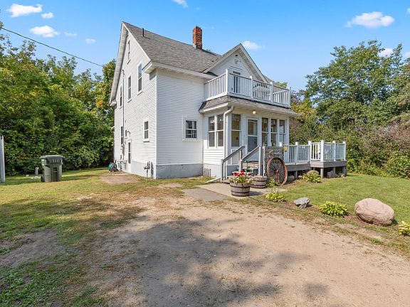 Charm and character on almost 6 acres in town! Built in 1914 featuring maple floors on the main level and white pine flooring on the upper level, original hardware on most of the doors, and a beautiful feature window in the living room. You will find 4 bedrooms, 2 bathrooms, an oversized 2 car garage, and a large unfished basement. There are also 3 three season porches that are unheated, but could be used for many purposes. The full unfinished attic has lots of great potential for additional living space, or just extra storage. You can enjoy the privacy from 2 different decks. Heading outside you will find a private wooded oasis. For outdoor enthusiasts, there is an ice rink just waiting for Winter weather. You will also find a bunkhouse that can also be used for storage, and a larger storage shed. Wander through the wooded trails and you will find raspberry and blackberry bushes along with lots of grape vines. The private backyard is a great spot to sit and relax around a campfire. And the best part, 5.83 acres right in town!