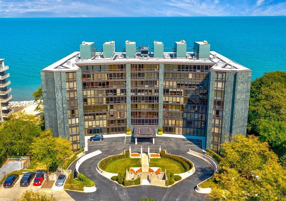 Unique Opportunity - Own your own private oasis on the shores of Lake Michigan. This stunning unit lives like a ranch home and features an incredible 2700 square feet of private outdoor living space- perfect for relaxing or entertaining overlooking the Lake. Step into the gracious foyer and be welcomed by the expansive 9-foot, floor ceiling windows that flood the home with natural light and offer breathtaking lake views from every room. Entertainers will appreciate the seamless flow between the spacious living room and adjoining dining room, perfect for hosting guests. The updated kitchen showcases a timeless all-white design complete with custom cabinetry and elegant quartz counter tops. The showstopper is the handsome, wood-paneled Lake room - a cozy retreat to unwind and take in the ever- changing lake vistas. Wake up to sunrise views from the luxurious primary suite featuring a private en-suite bath and generous walk-in closet. The second bedroom also includes a private en-suite bath. Additional highlights include an oversized in- unit laundry room and ample storage. TWO PARKING SPOTS with valet service included. Residents can enjoy access to a recently refurbished pool and exercise room, along with full-service amenities including on-site management, engineering staff, and a 24/7 doorman. Step outside to Langdon Beach or stroll across the street to the rejuvenated Plaza Del Lago shopping center with amazing stores, restaurants, Starbucks and more. You are also minutes to downtown Wilmette and all it has to offer. Truly a rare offering!