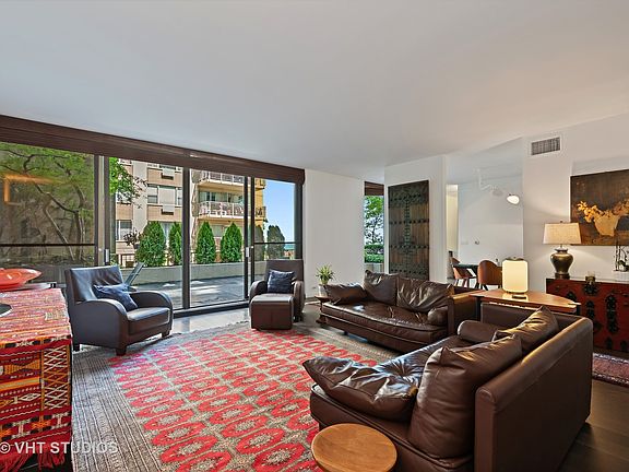 Your home on the lake! Lives like a ranch with all the amenities of a condo. Sleek and sophisticated, this first floor (no elevator and easy touchless access), beautiful recent rehab with the finest materials and finishes features 3 bedrooms with 3 ensuite bathrooms. The crown jewel is the large and private 1000sq. ft. wrap around terrace with a professionally landscaped yard. There are gorgeous wide plank oak hardwood floors throughout the condo, high ceilings, and floor to ceiling windows to enjoy the lake views. The gourmet kitchen features state of the art appliances, custom dark wood cabinetry and quartz countertops. With large spacious rooms, a great floorplan, and amazing outdoor space this condo lives like a house. Newer air handler, electrical, lighting and doors. The building staff caters to your every need. Life is easy on the lake! Buyer pays Wilmette transfer tax.