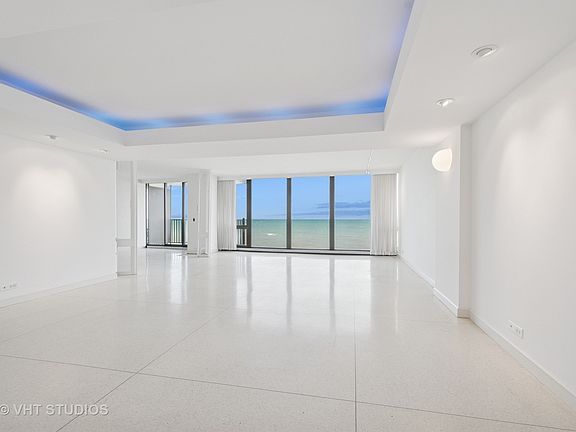 Enjoy expansive lake views from this large 2 bedroom unit, beautifully located on Sheridan Road along the shore of Lake Michigan. It's open floor plan allows this spectacular view of the lake from the kitchen, dining room, living room, den, and bonus room (Formerly an office, now a bar!). What an incredible space to entertain or simply relax! Private elevator opens to your front door. Details like the cove lighting in the recessed dining room ceiling will surprise you. This luxury building features 24-hour doorman, valet car service, exercise room, outdoor pool, and more. Vacant and easy to show! The bronze sculptures are excluded. See listing agent for more info.