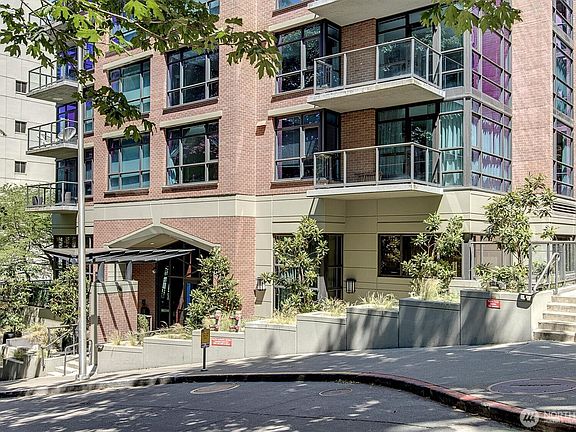 Live at Meridian Condominiums in Seattle’s vibrant core, just steps from Starbucks Reserve, light rail and public transit, the Convention Center, and the premier shopping of downtown. This sunlit 9th-floor corner 1 bed, 1 bath + Office/Den features 751 sqft of stylish, comfortable living with sweeping city views and a private patio—perfect for morning coffee or evening unwinding. Enjoy a cozy gas fireplace, gas stove, custom blackout blinds, central A/C, and in-unit laundry. Includes a secured parking space and storage. The Meridian offers 24/7 concierge, secure entry, fitness center, sauna, hot tub, theater, billiard lounge, and club room. Pre-inspected and move-in ready.