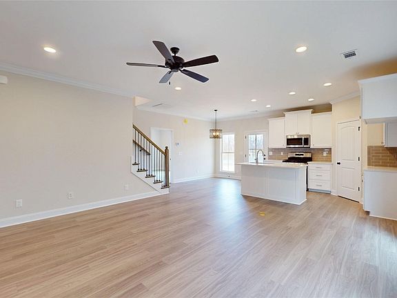 The owner’s suite on the main level provides a peaceful retreat with a generous 16’ x 14’ layout, a large walk-in closet, and a spa-like bathroom featuring double vanities, a tiled shower, and a soaking tub. Upstairs, you’ll find two additional spacious bedrooms, each with walk-in closets, a full bathroom, and a versatile loft area ideal for a second living space, study, or playroom. Additional highlights include a mudroom with a charming drop zone and walk-in attic space for ample storage.