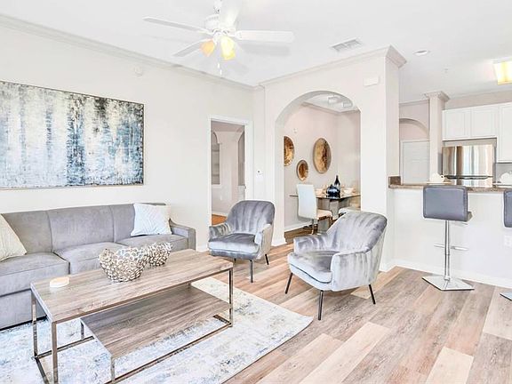 Step into effortless elegance with this rarely available, fully furnished 3-bedroom, 2-bathroom condominium perfectly situated in one of Winter Garden’s most desirable communities. Offering a harmonious blend of comfort, style, and convenience, this residence is ideal for those seeking resort-inspired living or a turnkey investment property ready for immediate occupancy—whether for short-term stays, long-term rentals, or personal use. Inside, you’ll find a bright and spacious open-concept layout designed for modern living. The primary suite serves as a peaceful retreat, complete with a walk-in closet, a stand-up shower, a separate soaking tub, and private access to the covered patio—the perfect spot to enjoy your morning coffee or unwind after a long day. The second bedroom provides comfort and flexibility, making it ideal for guests, a home office, or family use. The kitchen seamlessly opens to the living area, creating a welcoming environment for entertaining or relaxing. Step through the sliding glass doors to your expansive private patio, where indoor and outdoor living come together beautifully. For added convenience, the unit includes a full-sized washer and dryer and comes fully furnished, allowing you to move right in and start enjoying the lifestyle you deserve. The building’s amenities rival those of a high-end resort. Residents and guests enjoy access to a sparkling pool and spa, covered garage parking, a fully equipped fitness center, and a private theater room perfect for movie nights. Recently updated common areas add to the appeal, featuring a stylishly renovated lobby, modernized gym, refreshed mailroom, and a fun-filled game room designed for leisure and connection. Located just minutes from Walt Disney World, premium shopping centers, and an array of dining and entertainment options, this condo offers the ideal balance of tranquility and accessibility. To top it off, the Homeowners Association (HOA) makes everyday living effortless by covering cable, internet, water, sewer, trash, security, and covered garage parking. Experience the best of Florida living in this beautifully appointed Winter Garden retreat—where modern convenience meets timeless comfort, and every day feels like a vacation.