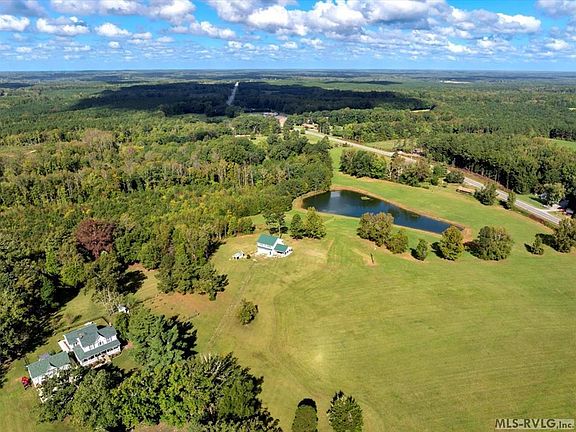 Come sit a spell on this dreamy front porch & you'll be longing for more. This homestead on 76.83 acres is truly something special! Built in 1900, this historic, restored farmhouse offers classic vintage charm with luxurious finishes. Experience the picturesque setting from the first turn. The original section of the 2784 sq ft main house boasts original pine floors, intricate molding & 2 fireplaces, inviting you to step back to a simpler time. The classic staircase leads upstairs to 2 bedrooms, a full bath & loft. Vintage meets vogue in the spacious, modern addition featuring a den, primary suite, & gourmet kitchen. Custom tile backsplash, farm sink, quartz countertops, gas cooktop, & large eat-in island are bathed in natural light. Off the kitchen is a side porch leading to a delightful fenced lawn that features a pergola, flower garden, & greenhouse. A place where you'll want to spend hours enjoying the nature surrounding it. The primary suite has a lg bath w/soaking tub, shower, & walk-in closet. Don't miss the updated guest bath off the dining rm. Other recent upgrades include whole house gas generator, & new roof. The expansive 1040 sq ft, three-bay garage w/ 10' ceilings provides ample space for vehicles, storage, and hobbies. A short stroll away, a newly built guesthouse provides private, elegant accommodations. The 1156 sq ft home features a large double garage on the entry level. Upstairs, a gourmet kitchen, living area, 2 bedrooms, & 2 baths w/ custom tile & quartz countertops await. 2 decks overlook pond. A lifestyle defined by nature. 35+ acres cleared for farming or hay baling and plenty of acres for the hunter/outdoorsman. This is not just a property, it's an extraordinary estate-a potential family homestead, and a legacy to be cherished for generations.