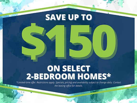 - Special offer! Save up to $150 on select 2-bedroom homes! *Limited-time offer. Restrictions apply. Specials, pricing and availability subject to change daily. Contact the leasing office for details.