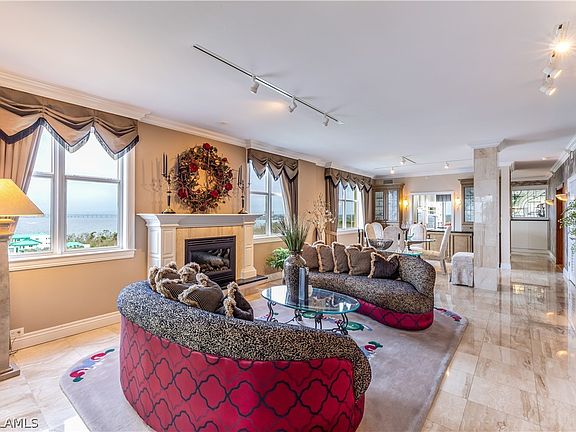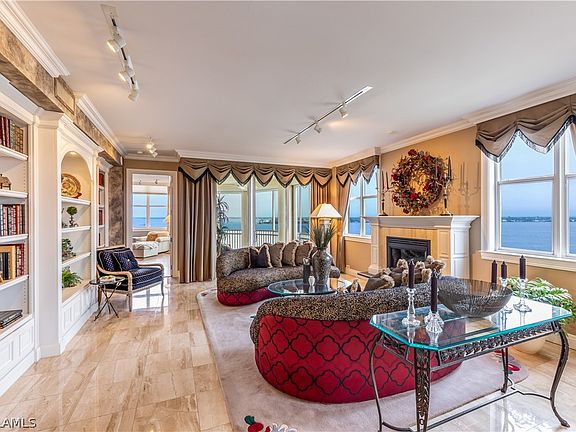 GULF HARBOUR GOLF MEMBERSHIP AVAILABLE FOR SEPARATE PURCHASE WITH THIS HOME-NO WAITING. Spectacular 9th floor Must See End Unit. Custom, one of a kind, unique Riverfront home. From this fully furnished crisp & clean condo you have BOTH beautiful sunrises, spectacular sunsets & breathtaking views. Raised floor throughout offers comfortable living & best views of the water. Marble & wood flooring. Granite Counters. Lives like a single family home with total privacy, yet offers maintenance free living to maximize your enjoyment. Electric Impact Shutters. Custom Library with built in book shelves. New AC & water Heater. Master Suite with large walk in closet & private bath. 1 parking space assigned + guest spaces. With membership you will enjoy the benefits of a #1 ranked club in SWFL, championship golf course, tennis, fitness facility, pool, Waterside Restaurants & Tiki Bar. Boat slips are available for lease or purchase. This is an amazing lifestyle choice in the resort style community of Gulf Harbour Yacht and Country Club. Located close to the International airport, outdoor shopping & fine restaurants. Medical facilities nearby. Consider Your Lifestyle, then choose this home.