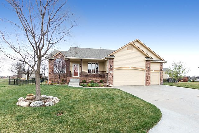 This meticulously maintained 5 bedroom, 3 bathroom ranch style home sits on nearly a half-acre lot in the heart of Auburn Hills. The semi-open concept has been well cared for with impeccable attention to detail. Your guests will be greeted in the entry way which is open to the living room with vaulted ceilings or to the kitchen and dining area. Warm, ¾ inch, hand planed, solid oak floors span through a majority of the main level (including all 3 main level bedrooms). The kitchen boasts loads of cabinet space, tile floors, tile back splash, and overlooks the dining area. Vaulted ceilings and an abundance of natural light make this space feel comfortable and airy. Conveniently located directly off of the kitchen is the expansive main level laundry room. The master bedroom offers great closet space and an ensuite bath with separate shower, Jacuzzi tub, and large vanity with double sinks. The fully finished, view out basement is a great place to relax and unwind. The basement includes a rec room, two bedrooms, a full bathroom, storage room, and is also filled with natural light. You can entertain guests, have a BBQ, or just enjoy the Kansas weather on the covered deck overlooking the large, private, completely fenced backyard. Your grass should be lushes and green with the sprinkler system and irrigation well. Maintenance will be lower as the exterior is composed of Hardi-Board concrete fiber siding. There are great neighborhood amenities to enjoy including 4 community swimming pools, playgrounds, walking/jogging paths, and Auburn Hills Golf Course (the newest city course in Wichita). Located within the Goddard School District, this home is ready to move right in to! If you are considering building new construction, you should look here first!