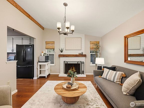 Welcome Home to this beautifully updated 3-bed, 2-bath rambler in desirable Silver Firs Community. Warm natural light pours through large windows, highlighting the vaulted ceilings, open floor plan, & rich engineered hardwood floors that flow seamlessly throughout. Kitchen features under mount lighting & full tile backsplash. Primary suite offers a serene spa-like 5-piece bath w/ heated slate floors, marble details, & custom built-ins. Newer roof, windows, garage door, & front door. Step outside to a spacious backyard where a new deck & covered awning invite you to savor peaceful mornings or cozy evenings year-round while staying dry. Room to add RV parking. Great community parks, playfields, dog park, shopping, & sidewalk streets. Turn Key