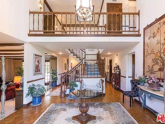 Absolutely the best value in the Palisades! Above famed Sunset Blvd. in the Palisades lies a special estate set on almost ~ of an acre. This elegant home features approx. 5,000 sqft & an unprecedented opportunity to make this property your own. Drive into a pvt. & gated entrance w more than a dozen parking spaces. Fantastic flow for entertaining leads you from the grand 2-story foyer to the formal living & family room that share a wet bar & double sided fireplace. The main level also features a formal dining room, country eat-in kitchen, den (potential bdrm), powder, & pool bath. Upstairs the lavish master suite features a huge walk in closet & luxurious bath. There are 2 additional bdrms upstairs with a full bath and treetop/canyon views plus a spacious guest suite w/ private entrance & patio. The backyard is a masterpiece with a full sized paddle tennis court, pavilion, putting green/ grassy lawn, pool & spa, and stone waterfall.