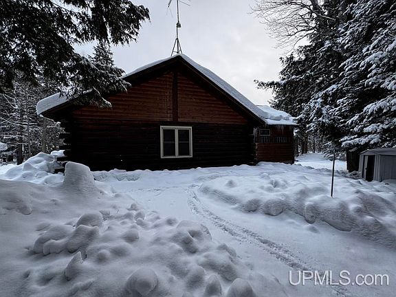 Tucked back at the end of a long, tree-covered drive, this rustic log cabin sits right in the heart of the property and offers the true “Up North” escape everyone’s chasing. The 30x26 log cabin features an open living area, full bathroom, loft, and private bedroom, with a 320 sq ft addition added in 2007 that serves as the kitchen area and offers flexibility for a dining space or extra sleeping area. A detached 24x36 log-sided garage (2007) with concrete slab and power is perfect for storing toys, tools, and gear. Thoughtfully equipped with underground power, geothermal heating and cooling, and a Generac generator, this property is built for comfort and reliability year-round. The ultimate cabin-in-the-woods experience in Michigan’s Upper Peninsula! Enjoy year-round access, underground utilities, well and septic, phone service, and high-speed fiber internet—rare for a remote getaway. The property adjoins over 2,500 acres of State of Michigan land, giving you unlimited access to hunt, hike, and explore right out your back door. Located near ATV and snowmobile Trail #14—ride straight from camp. Close to Mt. Arvon, waterfalls, Witz Marina, Lake Superior, Fins Bar & Grill, and Huron Bay Trading Post. A rare opportunity to own a private UP retreat with modern systems!