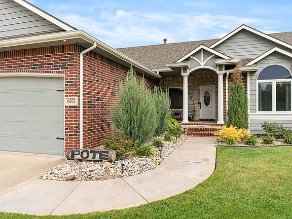 Welcome to this custom-built Highland Springs home, ideally located in the top-rated Goddard School District. Inside, find a practical split bedroom floor plan featuring a luxurious master suite with laundry access. The open floor plan boasts plenty of natural light showcasing the hand-scraped hardwood floors in the kitchen and dining area. The kitchen features granite countertops, a nice sized pantry, and stainless-steel appliances. You will love the gas fireplace in the living room- perfect timing to enjoy this fall! Descend to the finished basement which includes two additional bedrooms, a full kitchen/wet bar and a custom entertainment center. Outside, you will enjoy the covered deck, concrete patio, and pristine landscaping. Plus, the epoxied garage floors add an extra touch of luxury! Enjoy the last of the warm weather at the neighborhood pool just down the street or spend your evenings strolling through the convenient walking paths. With an excellent location, spacious lot, and top-notch schools, don't miss out – schedule a showing today and make this your next adventure!