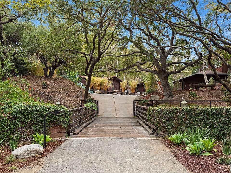 $2,000,000 reduction! This magical, roughly 1-3/4 acre property is located on Evans Road a private, country lane bounded on one side by Will Rogers Historic Park (and its famous polo field) and Rustic Canyon Creek (a year-round waterway with natural waterfalls which runs to the Pacific Ocean) on the other. The meandering one-half mile lane, dotted with bridges criss-crossing the creek to the 16 homes located on it, has long been a little-known community, home to globally-known politicians, actors, and industry leaders. Zoned for horses, it's common to see one trotting down the lane and up the trail to the Park and the miles of equestrian and hiking trails beyond. An abundance of towering Sycamores, Eucalyptus and Oak trees conveys a park-like quality and ensures the ultimate in privacy. Maintain the charming remodeled 4,100+ SF, 5-bedroom home, complete with pool and N/S facing tennis court, or design the estate compound of your dreams. Crest Real Estate Report and preliminary programming and design by world-renowned architects Woods + Dangaran are available.