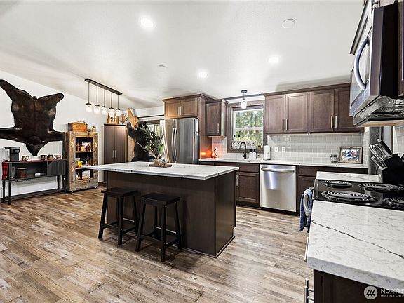 Tucked at the end of a quiet dead-end road with no HOA, this private retreat sits on shy 2 lush acres. Inside, enjoy 3 beds, 2 full baths, an updated kitchen with granite counters, tile backsplash, LVP flooring, and newer cabinets. Rustic wood accents add warmth, along with wood feature walls. Both bathrooms have new vanities, and the laundry/mud room leads to a low-maintenance Trex deck. Outside features include RV parking, a firepit, tons of storage, and a massive finished outbuilding with wood walls and ceiling—ideal for a gym, guest suite, or studio!
