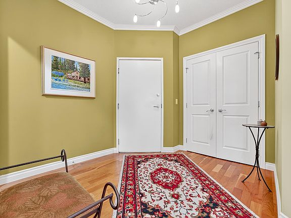 Incredible WEST facing, TOP floor 2 bed/2 bath corner unit in the heart of CRESTWOOD, with 2 TITLED u/g parking stalls, central A/C and much more! Welcome to "The Valleyview", a prestigious & exclusive condominium property with concrete & steel construction, 9' ceilings, beautiful brick and stone exterior and top notch finishings throughout. This nearly 1200 sq.ft. suite has been meticulously cared for and maintained by the original owner and is pet and smoke free. Plenty of gorgeous wood features throughout, including the cabinets, hardwood flooring and feature corner fireplace. Large, bright kitchen with stainless appliances and granite counters, including a peninsula island. 2 good sized bedrooms, 2 full baths, ensuite laundry, central vac, home theatre ceiling speakers, PLUS a large, west facing, and very private, covered deck with gas BBQ hookup. Fantastic location with great access to downtown, river valley and all amenities & directly across from the shops and services of Crestwood Centre.