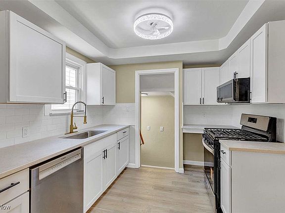Welcome to this beautifully renovated 3-bedroom, 2-full-bath Bungalow in Maple Heights. Step into a bright, sun-filled living room with large windows, fresh paint and new flooring that flows into the updated eat-in kitchen featuring brand-new quartz countertops, new cabinets, and new stainless appliances. Two main-level bedrooms and a newly remolded full bath offer convenience, while the upstairs provides a spacious third, master bedroom retreat with a huge walk-in closet! The completely finished basement adds a second full bath, living room/recreation room, laundry area, and plenty of storage. Enjoy peace of mind with central air, new windows, and new water heater. Outside, a detached 2-car garage, fenced-in backyard, and a concrete front porch provide great spaces to enjoy the outdoors and are perfect for pets. A must see! Perfect for homebuyers and investors alike. POS violation free. Visit today and make this your new home!