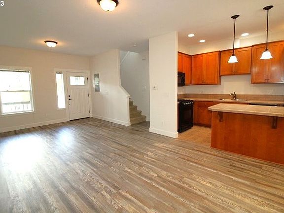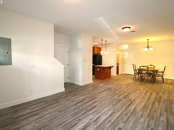 3BR 2.5BA townhouse featuring an open floor plan with high ceilings, kitchen island and gas stove. Enjoy your primary suite with vaulted ceiling, soaking tub, step-in shower, double sinks and large walk-in closet. Interior freshly painted, new LVT flooring on main and enjoy A/C during the summer. Laundry on upper level with bedrooms. Attached large double car garage with extra outside parking. Cute covered porch in front. Beavercreek Elementary School. Close to Oregon City HS, Clackamas College, shopping, parks and I-205 for easy commuting. HOA fee only $35 per month!