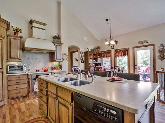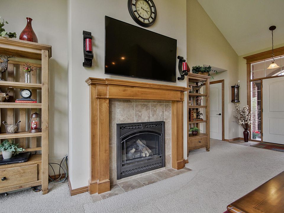Welcome home to this stunning 5bed/3bed/3car home in the beautiful Shadow Woods addition. This home has been extremely well-maintained and shows like a model. From the vaulted cathedral ceilings and open floor plan to the full wall of windows overlooking the adjacent tree line, this home will impress even the pickiest of buyers. The kitchen itself boasts a full suite of brand new stainless appliances, beautiful maple cabinetry, center island with solid surface counter tops, huge walk-in panty, pull-out spice racks, wood laminate flooring, and under-cabinet lighting. The expansive master bedroom offers views of the tree line, coffered ceiling, and en suite bath with dual vanities, soaker tub, and massive walk-in closet with natural lighting. Both additional main floor bedrooms are over-sized with ample closet space. The hall bath is neutral with tiled counter tops and transom window. Additional main floor amenities include brand new LED lighting throughout, a laundry room with folding table, drop zone/mud room adjacent to the kitchen, and gas fireplace. Downstairs, you'll find a true walk-out basement with lots of windows giving the same stunning views. The family/rec room is extensive, and features a second fireplace and dry bar. Both basement bedrooms feature walk-in closets and lots of natural lighting. A beautiful bath with lots of storage and two large storage areas complete this floor. Outside, you'll find colorful landscaping, sprinkler system, wrought iron fencing, cov