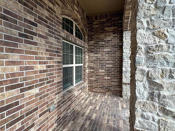 Incredible home, freshly painted with modern neutral tones and epoxy-coated garage. Exterior features stone and brick with a charming arched porch to enjoy the day. Equipped with Ring camera at the entrance and Ring alarm system. Beautiful tile flooring throughout, with carpet only in bedrooms. Unique open-concept floor plan with high ceilings, full-wall family room with wood accents, and an office with French doors and closet perfect as an additional bedroom. Spacious formal dining and family rooms, featuring a stunning chandelier. Elegant kitchen with wood cabinetry, stainless steel appliances (microwave, stove, oven, dishwasher), and walk-in pantry. Refrigerator included. Large utility room with extra space, covered patio, and sliding wood doors in secondary bedroom with full bath and in master suite. A truly unique layout offering generous spaces in every area.
