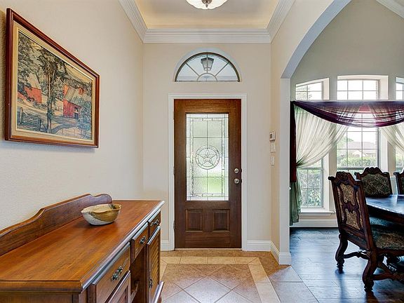 Your piece of country living is waiting just minutes to local shopping, restaurants & entertainment! Beautiful 1 story custom home on over an acre in sought after Aston Meadows. Built-in storm shelter & storage shed. Elegant hardwood flooring, crown molding, new carpet, granite countertops in the kitchen, flex room with raised platform for theater style seating, wet bar & whole house audio system. Enjoy relaxing in your master suite with oversized bath that has separate vanities, jetted tub & dual shower heads. Great covered patio, fenced backyard, electric hookup for RV, plus oversized 3 car garage. New roof with 50 year shingles - 2019. No water bill & no city taxes in Northwest ISD. This is a MUST see!