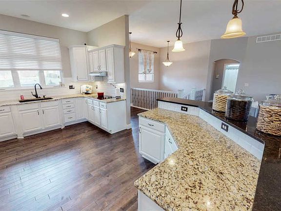 This beautiful home is nestled in Auburn Hills 15th addition! This 5 bed 3 full bath split ranch floorplan is a must see. Real hard wood floors in kitchen, living room and dinging area were done in 2020, fireplace is the focal point of the living room as soon as you walk in. Huge covered deck overlooking back yard that offers a sprinkler system (they did install a well). The master suite contains a updated bathroom, corner tub, brand new shower, his and hers granite vanities, and a oversized closet. Second and third bedroom are on the other side of the house and share a full hallway bath with a granite countertop. Kitchen has been completely refreshed. New granite counters, new back splash, offers eat-in bar, and stainless steel appliances, there is lots of cabinets and counter space. Downstairs offers a full walk-out basement, custom new wet bar perfect for entertaining with engineered hardwood floors, fireplace and built ins. There are two more bedrooms and a full bath downstairs. Both upstairs bathrooms updated in 2021, new exterior paint 2021. You're not going to want to miss this Auburn Hills home with so many great things to offer.