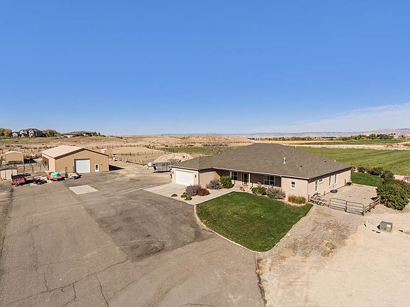 This amazing property has more to offer than meets the eye! Start with a paved, tree-lined driveway leading to sprawling custom home, with 5 bedrooms, office, huge family room, and guest suite. Plus an attached 2 car garage, geothermal heating and cooling, and whole-house water filtration. Step out the family room to enjoy a heated indoor Endless Pool, enclosed by glass doors so you can enjoy the view and the breeze but stay in the shade. Then, the shop! Approximately 45' x 100' structure which includes enough room for 6 vehicles, a 12' overhead door, heated and cooled office, tack room, 3 horse stalls and hay storage. Plus there's an arena, horse shelter, and pole barn. Last but not least, a 750 sq ft underground shelter that will have you feeling safe and prepared for any manner of things. All of this on 10 irrigated acres in a country setting, just minutes from downtown Fruita, CO!