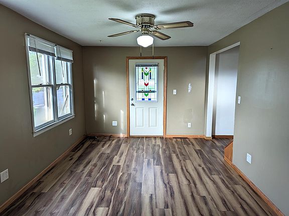 Nice 2 BR home on corner lot with mature trees and large 2-car garage. The main level features new vinyl flooring throughout, along with an updated kitchen with new countertops. The primary bedroom, laundry and full bathroom are on the main level for one-level living. The upstairs is open for a 2nd bedroom or office. Other highlights include no-maintenance siding and metal roof. Enjoy affordable living in a convenient location.